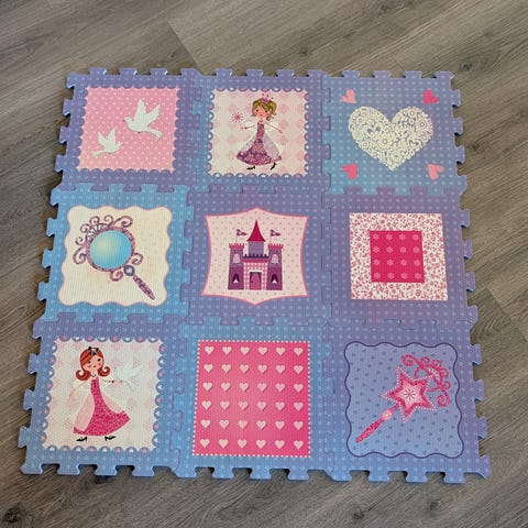 Tykk lekematte satt sammen av ni «puslebrikker».