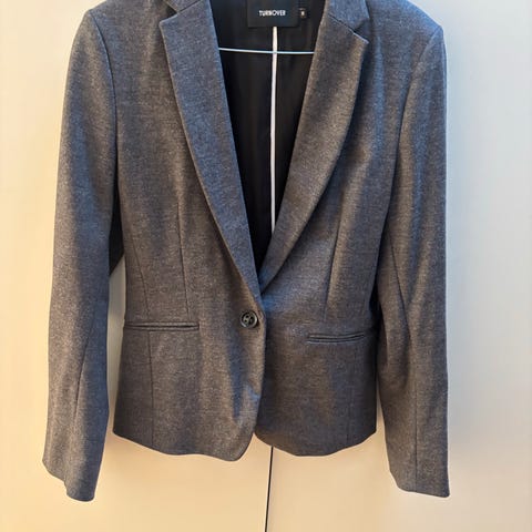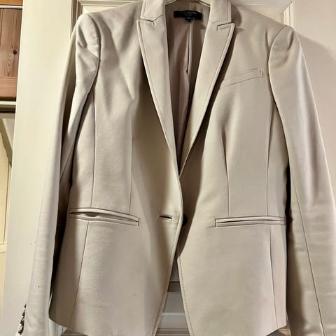 Selger et helt ubrukt og aldri vasket dressett fra Ann Taylor Factory i str. 10 (tilsvarer ca. norsk 40). Klassisk og elegant blazer med matchende bukse i et nydelig blågrått stoff med subtil rutemønster. Perfekt til jobb, presentasjoner eller mer formelle anledninger.