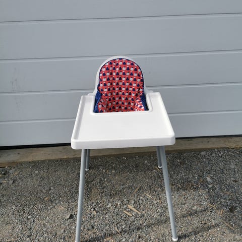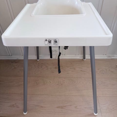 Brukt til ett barn. Selges med støttepute og brett. Noen små merker, men knapt synlige. Må hentes.
