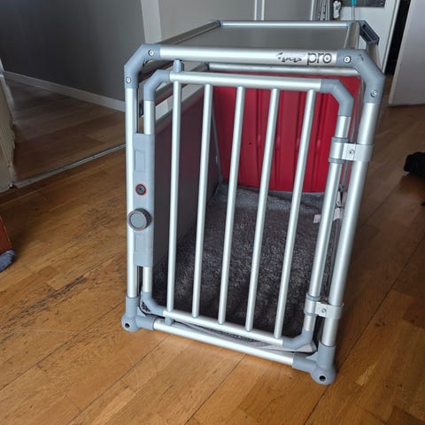 Brukt 4 pets bilbur. Brukt til elghund. Mangler nøkkel, men ellers uten feil.