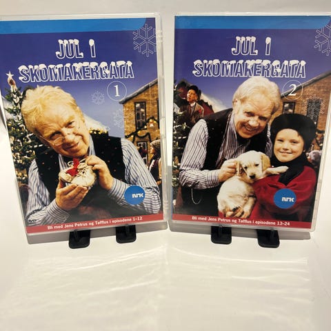 NRK Jul i Skomakergata DVD med julekalenderinnhold. Inneholder episodene 1-24 av den norske julekalenderen Jul i Skomakergata, med Jens Petrus og Trifon som hovedpersoner. Passer for alle aldersgrupper. DVD-format.