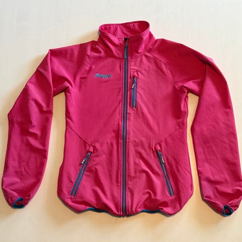 Jakken har avtagbar hette, glidelåslommer og justerbare mansjetter.
