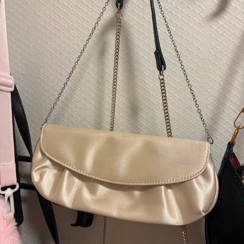 Zara dameveske laget av kunstlær i beige farge. Vesken har to håndtak og en avtakbar skulderrem for fleksibel bruk. Den har flere rom med glidelås og knappelukking for organisering av eiendeler. Vesken har metallføtter under for beskyttelse ved plassering.