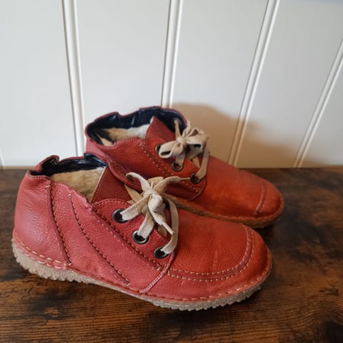 Veldig kule, litt vintage. Ekte semsket skinn.