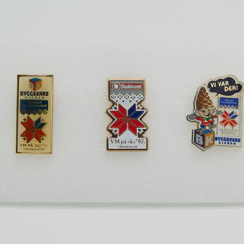 4 sponsor pins fra Ski VM i Trondheim 1997, Norske Skog