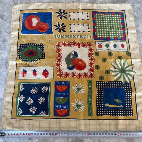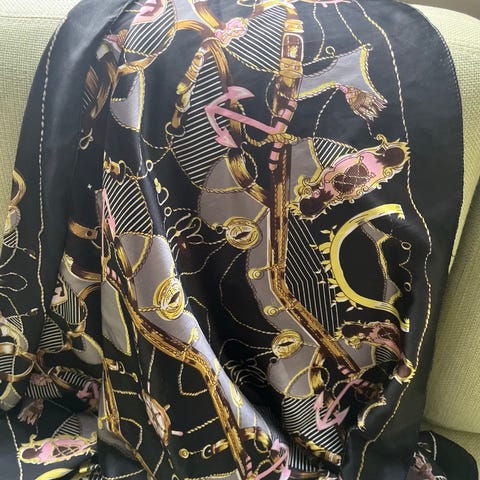 Retro Skjerf / tørkle i brun, beige og sort. Mønstrete. Ca 60x60 cm.