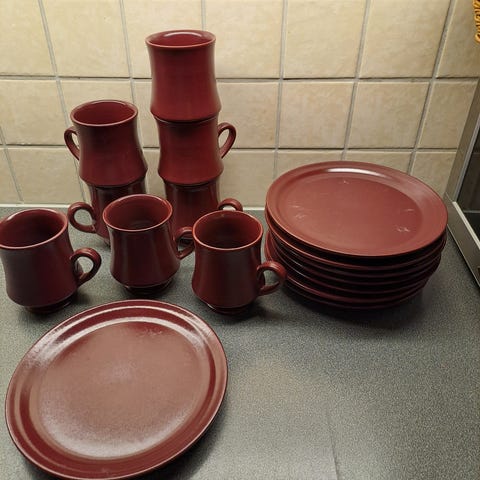4 Kopper og 5 asjetter i keramikk til salgs. Produsert i Italia