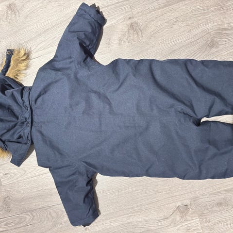 Deilig vinterdress for de aller minste str 74/80. Grå med lyserosa prikker og for. 100% polyester. Dobbel glidlås foran, brettbare ermer.