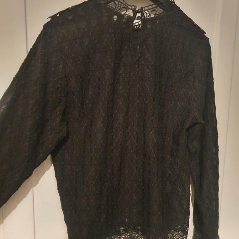 Lekker sort bluse med perleknapper og gulldetaljer.