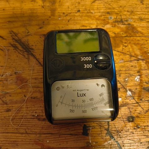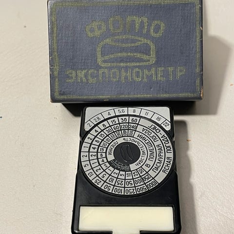Retro sovjetisk lysmåler, modell Leningrad 8. Eksponering virker ca. riktig etter kjapp test mot mobilkamera.