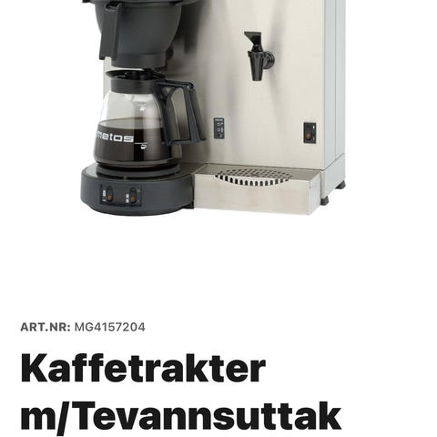 Selger en Metos A140 proff kaffetrakter, tidligere brukt i kafédrift. Maskinen har stått ute av bruk en periode, men er testet grundig og fungerer akkurat som den skal.