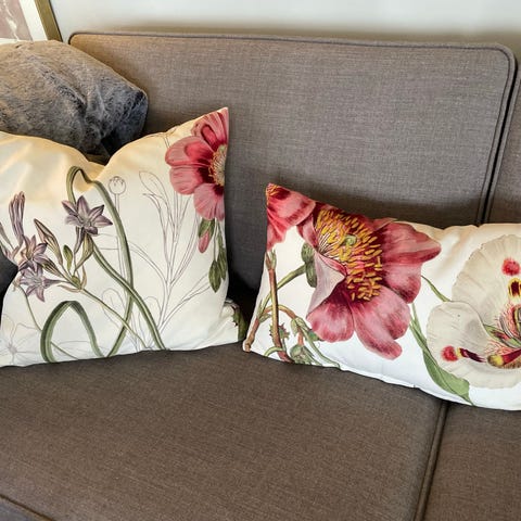 Vi har kjøpt ny sofa og de nye putene passer dessverre ikke til den. Putetrekkene er sydd av kvalitetsstoff på Fargerike. De ble kjøpt i sommer og selges for under halv pris.