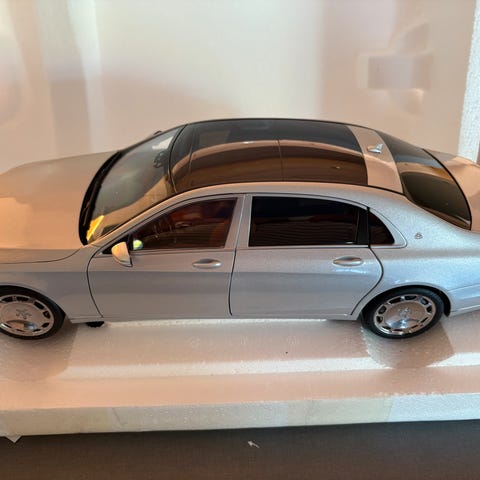 1/18 Mercedes-Benz S-klasse fra AUTOartTM Contemporary. Fin lakk i gull metallic. Styring og kjøring ok.