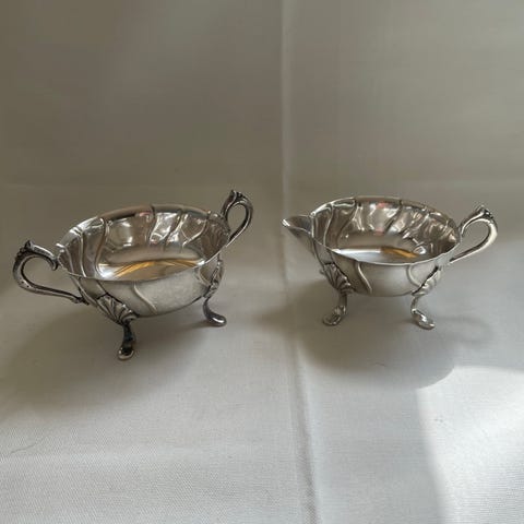 Eg mangler sølvpuss og har difor ikkje fått pussa den, men den er i fin skikk bortsett frå det. Eit fingerbøl til salt mest sannsynleg.