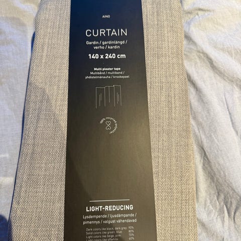 Gardinene er pakket og klare for montering. Pris per rull. Har 3 ruller.