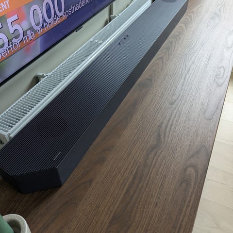 LG lydsystem med tilhørende høyttaler i svart farge. Systemet inkluderer en soundbar og en subwoofer. Designet for å forbedre lydopplevelsen i hjemmet, egnet for tilkobling til TV og andre lydkilder.