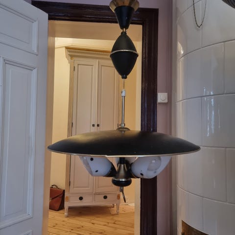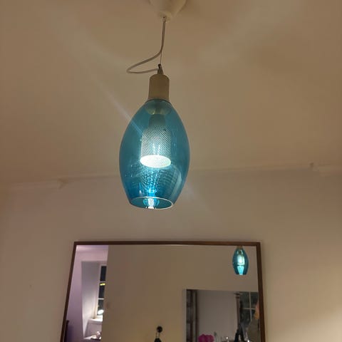 Fantastisk flott turkis Art Deco taklampe, selges.