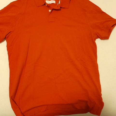 t-skjorte med krage av høy kvalitet En nesten usynlig flekk og noe falming av fargen