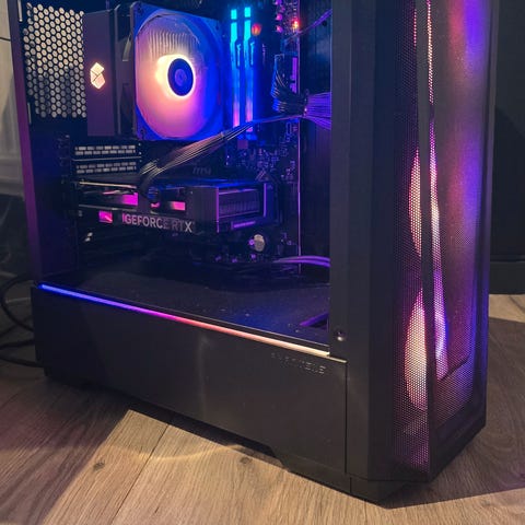 Gaming PC stasjonær, med RGB-belysning og en GeForce RTX 3060 ti