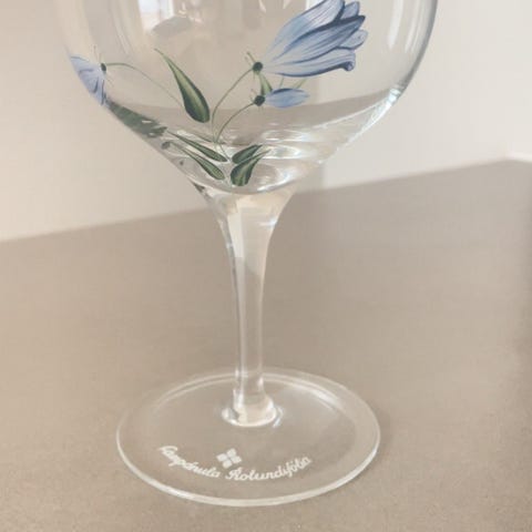 Champagneglassmed gullfarget dekor på fot og kant. Passer til servering av champagne og musserende vin. Glassets design inkluderer en bred skål og en tynn stilk, egnet for formelle anledninger eller samling. Fra Firkløveren. Nypris 259/stk. Selges samlet for 250,-