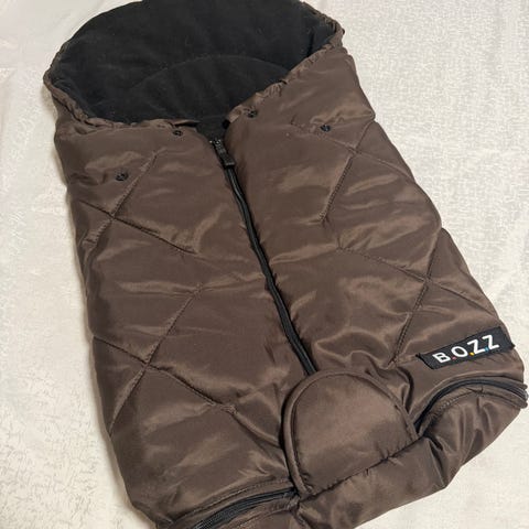 Veldig lite brukt bilsete pose. Innsiden er i myk fleece og det vannavvisende ytre stoffet holder barnet varmt og tørt