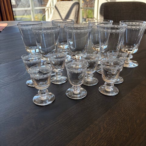 Tangen grå rødvin 15 cl fra Hadeland Glassverk. Lite brukt og ingen skader eller hakk. 6 glass håndplukket fra 2. sortering, resten 1. sort. Ikke vasket i oppvaskmaskin.
