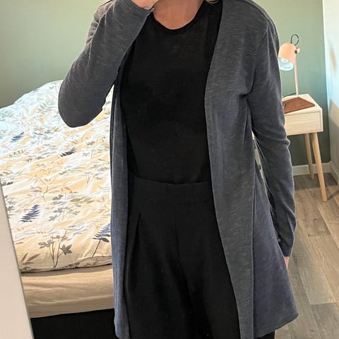 Lekker, klassisk lang vest fra kvalitetsmerket Gran Sasso. Den er laget i 100% ull og produsert i Italia – myk, varm og perfekt for lag-på-lag året rundt. Fargen er en tidløs melert grå som passer til alt. Kun brukt par ganger. Størrelse:italiensk 42, tilsvarer ca M.