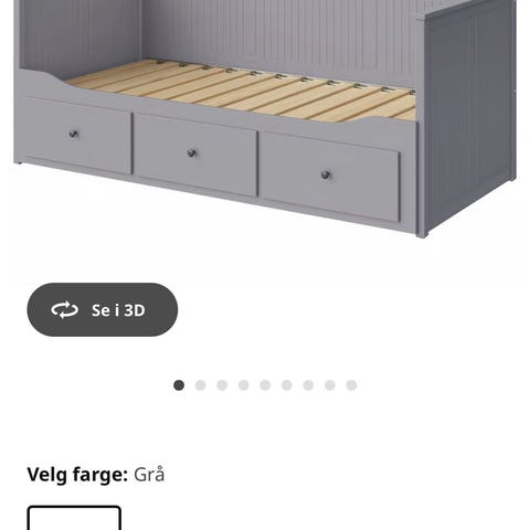 IKEA Hemnes Daybed med oppbevaring, laget av tre, malt grå. Sengen har tre skuffer under for ekstra lagringsplass. Passer til enkeltsengmadrass. Designet for å plassere langs vegg, egnet for soverom eller gjesterom.