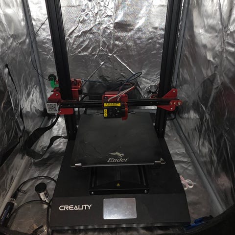 Temperaturmåler i filament holder og printer rom. Laget av mdf plater og ikea fronter. 2 Romslige skaper i bunnen til oppbevaring.