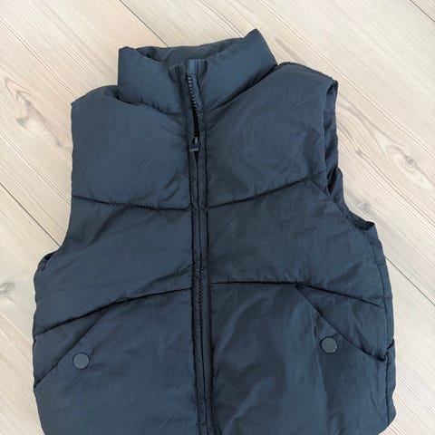 Modellen er kort. Festes med glidelås, og knappestolpe foran. Lommer på begge sider