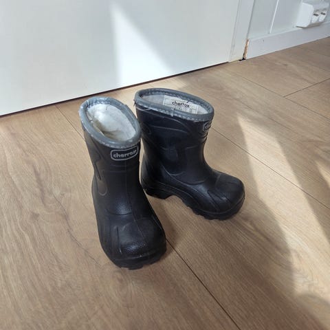Cherrox størrelse 23, fine og lette for små barn. Passer veldig bra om barnet er liten og har smale føtter.