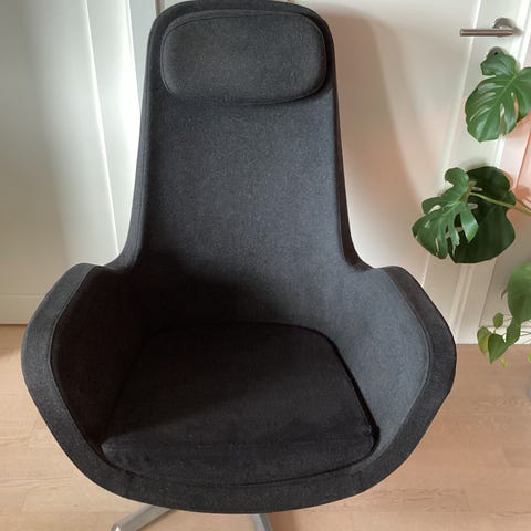 Selger en Varier Kokon Club lenestol trukket i det eksklusive ullstoffet Fame fra Gabriel. Stolen har kun vært brukt som demostol på kontor, og fremstår derfor tilnærmet som ny med svært lite bruk.