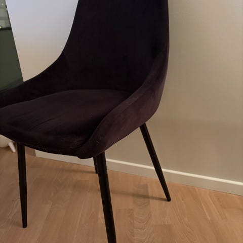 4stk. Mørkegrå Parade spisestol i fløyelstoff med svartlakkerte stålbein selge billig. Parade spisestoler er en myk og komfortabel nordisk stil. Kjøpte fra møbleringen og nye pris er kr.1599,- per stk. Ved kjøp av to- to det koster kr.1200,00.
