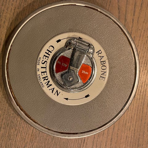 Gammelt målebånd i skinn og messing