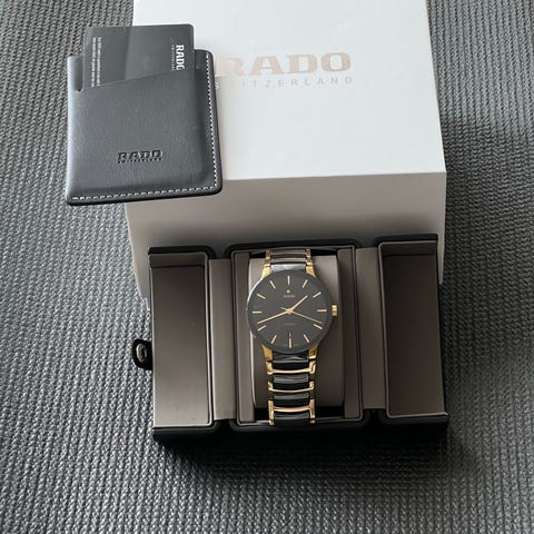 Pent brukt dameklokke fra Rado. Kjøpt i 2017 fra forhandler i Lisboa, lite brukt siden. Følger med eske, passkortet og ekstra deler. Noen fine lines ,se bilder. Har med kvittering også. Kan sende på kjøpers risiko. Prisen er satt.