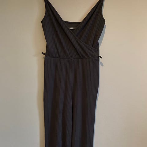 Veldig fin ribbestrikket jumpsuit i svart fra Bikbok. Dessverre for kort i beina for meg etter min smak. Sitter pent på ellers. Den har knyting i livet og lengden på stroppene kan justeres.