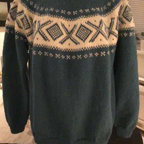 Cortinagenser, ny, 100% ull, strikket i Ask fra Hillesvåg Ullvarefabrikk.