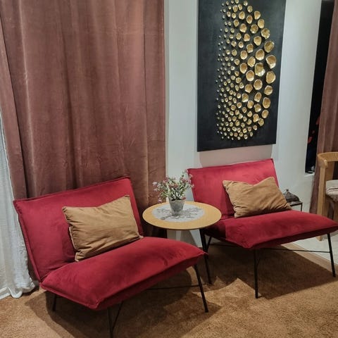 Stol i nydelig farge. Kun stått til pynt. Selges billig . God å sitte i.