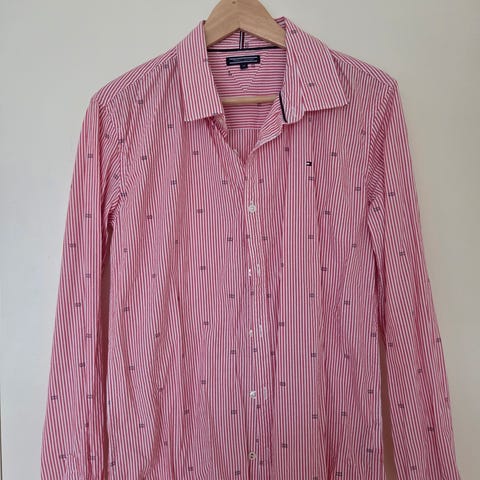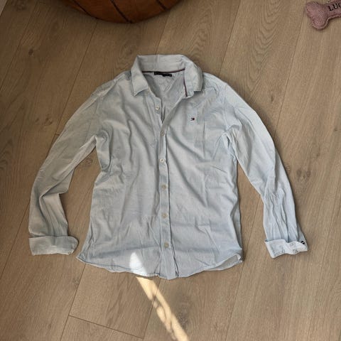 Tommy Hilfiger skjorte i størrelse XS, hvit farge med rutemønster. Laget av 100 % bomull. Skjorten har langermet design med knappelukking og brystlomme. Passer for menn.