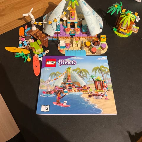 LEGO Friends Camping Event lekesett med bobil, kano, kajakk og flere tilbehør.