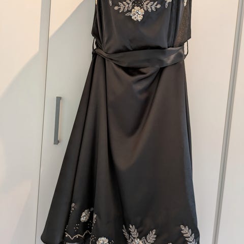 Første kjolen er halterneck med nydelige paljetter på brystet og volanger i skjørtet. Den andre kjolen har tynne stropper, litt mer stretch i stoffet og veldig behagelig.