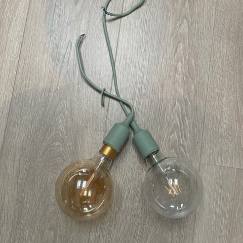 Ikke brukt, men mangler lyspære og stikk til kontakten.