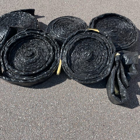2 stk. stålplater 6.30x0.80 , nye kr1000, stål mønepanner ca10 stk. + frontbeslag og 2 stålplater 3.5x1.00 mtr brukte m/ utskjæring for pipe, kr1000. Sms 94249486.
