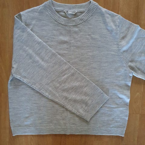 Donna genser i størrelse S, farge grå. Laget av 60% merinoull, 25% polyamid og 15% kasjmir. Langermet med ribbestrikkede detaljer ved ermer og hals.