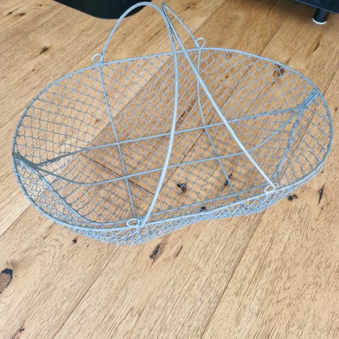 Kurv med to håndtak laget av flettet naturmateriale. Inneholder en plastforing som beskytter mot fuktighet. Passer til oppbevaring eller som dekorativ beholder.
