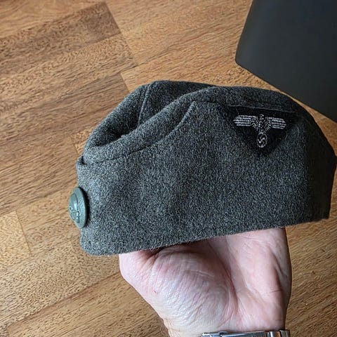 Tysk feltuniform jakke i grått stoff med flere lommer foran og metallknapper. Jakken har dekorative skulderklaffer med gullfargede stjerner og sølvfargede bånd, samt krageinnlegg med sølvdetaljer. Egnet som samlerobjekt eller til historisk rekonstruksjon.