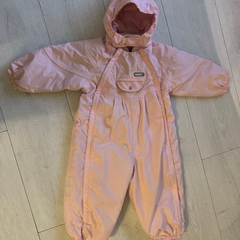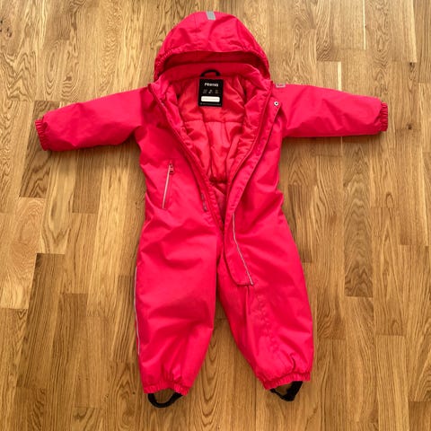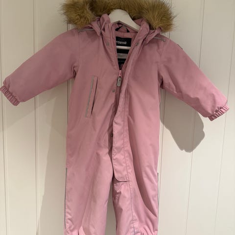 Reima barnedress i størrelse 86 for jente, i rosa farge. Dressen har hette med fuskepels og er laget med ReimaTec materiale som gir beskyttelse mot vær og vind. Egnet for utendørs bruk i kaldt vær.