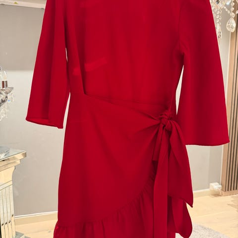 Va Vite Festkjole i størrelse M, rød farge. Kjolen har langermet design og er laget med blonder i mønster.