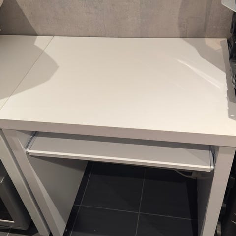 Lite enkelt skrivebord med en skuffe.