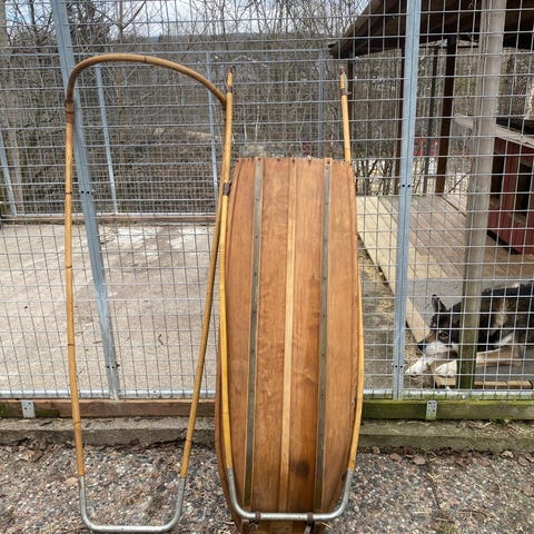 Stor hundeslede selges. Lengde ca 250, bredde 60. Ser bra ut, men har ikke ytterligere kunnskap om den. Selges 8000 eller bud.